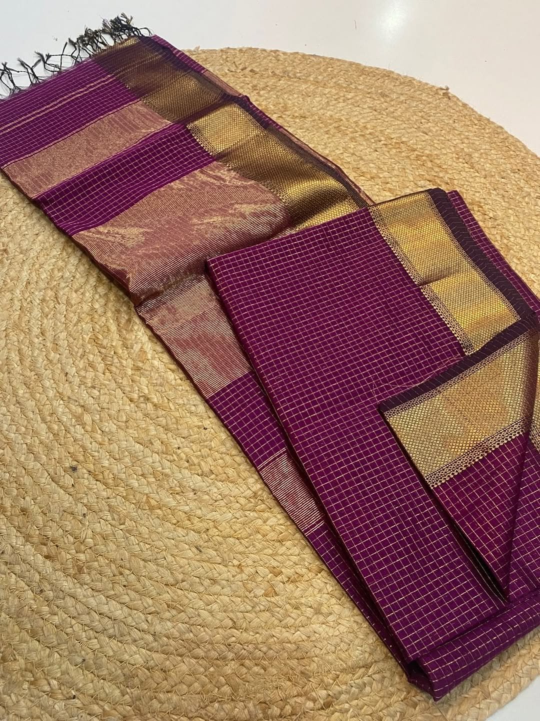 Be the first to review “Checks Maheshwari cotton saree – Mejanta colour”