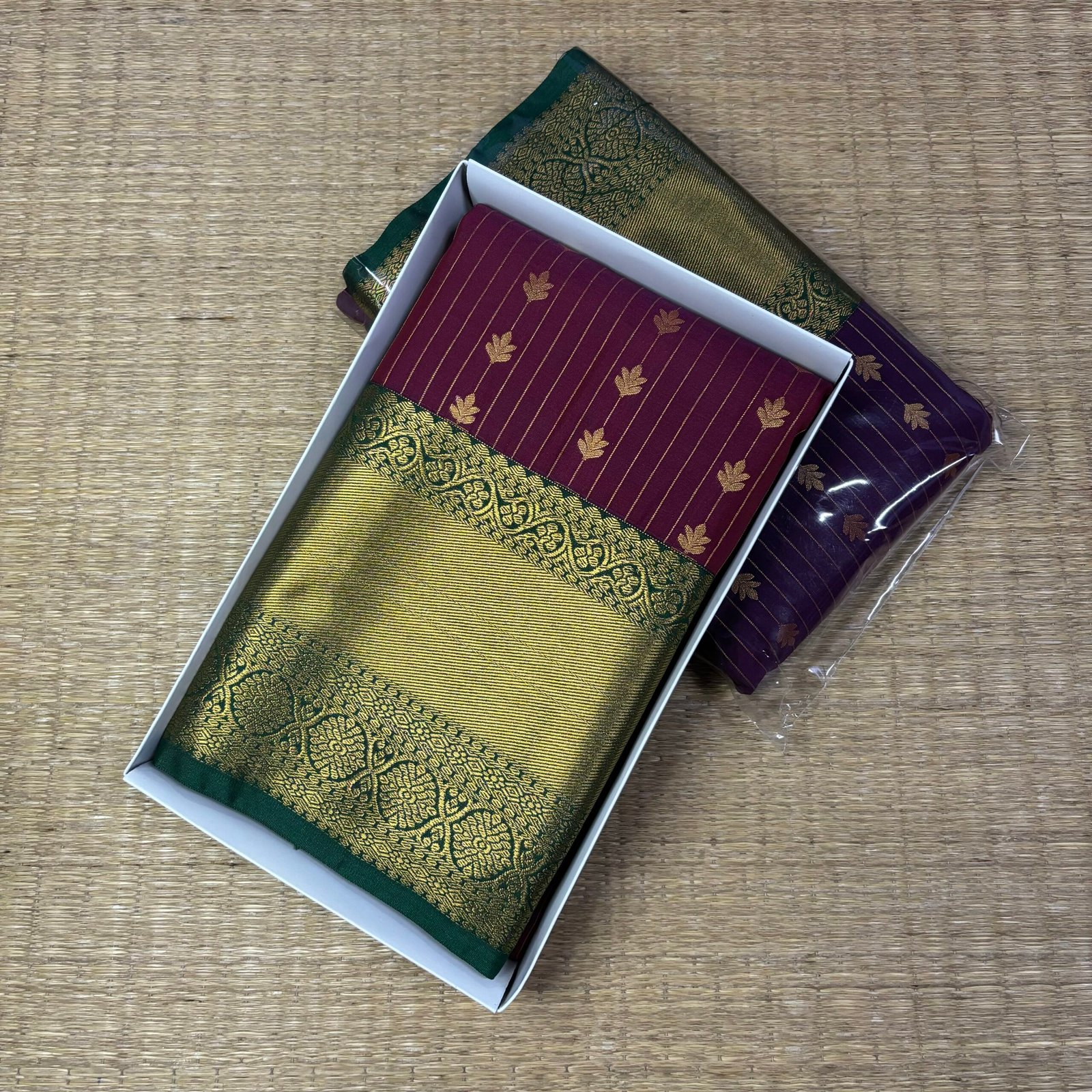 Kanjivaram Vaira oosi semi silk – Maroon With BGreen