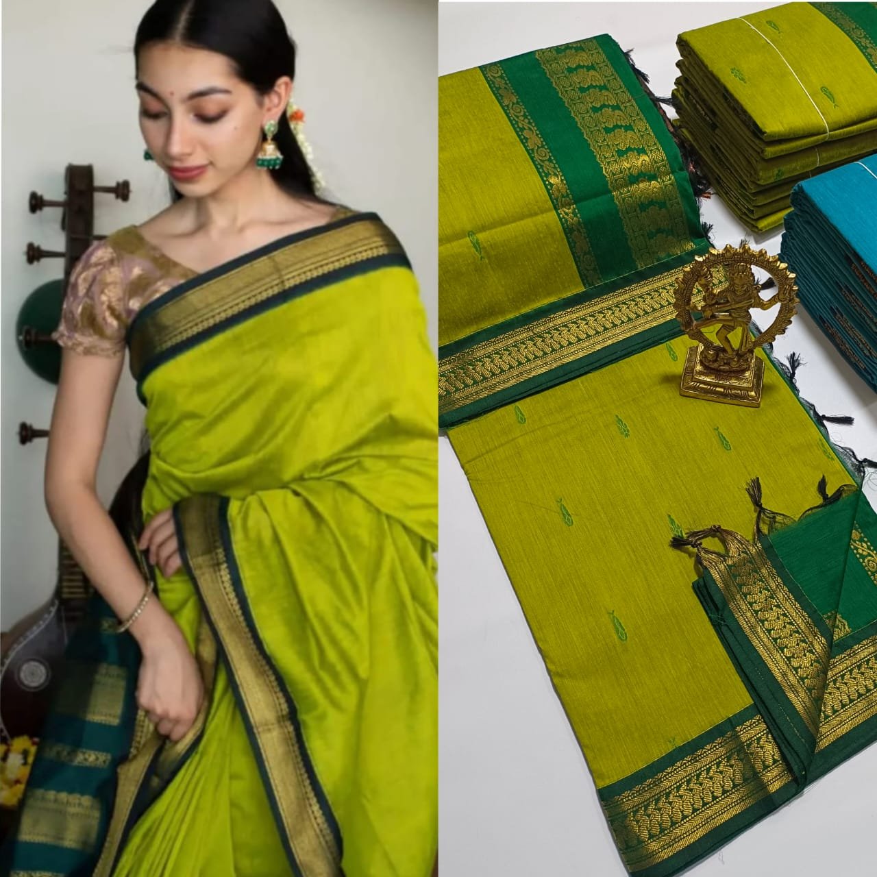 Enhance your elegance with our Kalyani Cotton Sarees, beautifully embellished with Butta designs — a perfect blend of tradition and modern charm.
