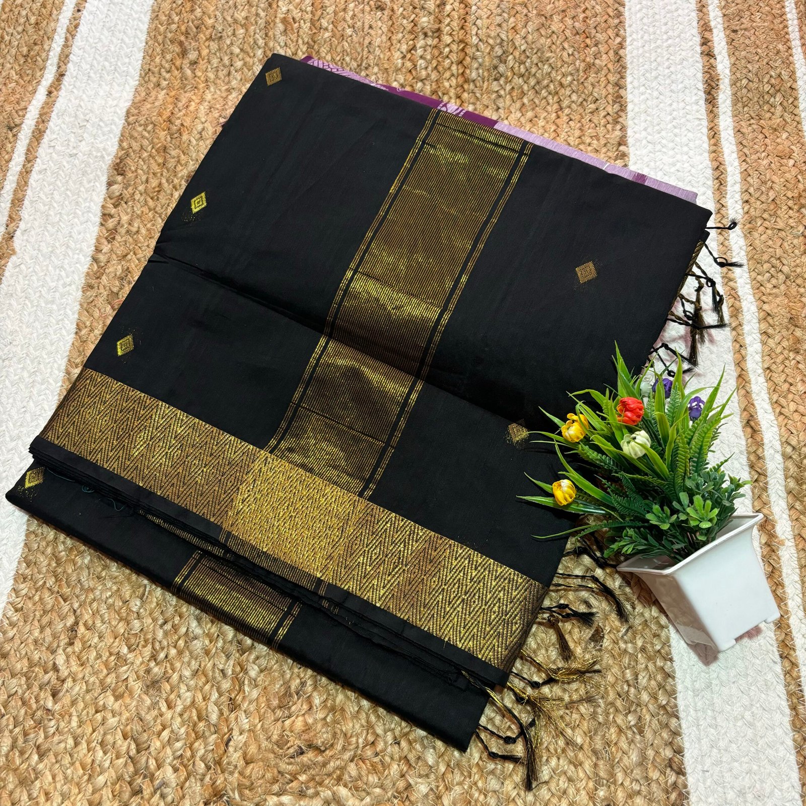 மகேஸ்வரி காட்டன் சேலை – வைர புட்ட வடிவமைப்புடன் கூடிய சுய நிற புடவை.