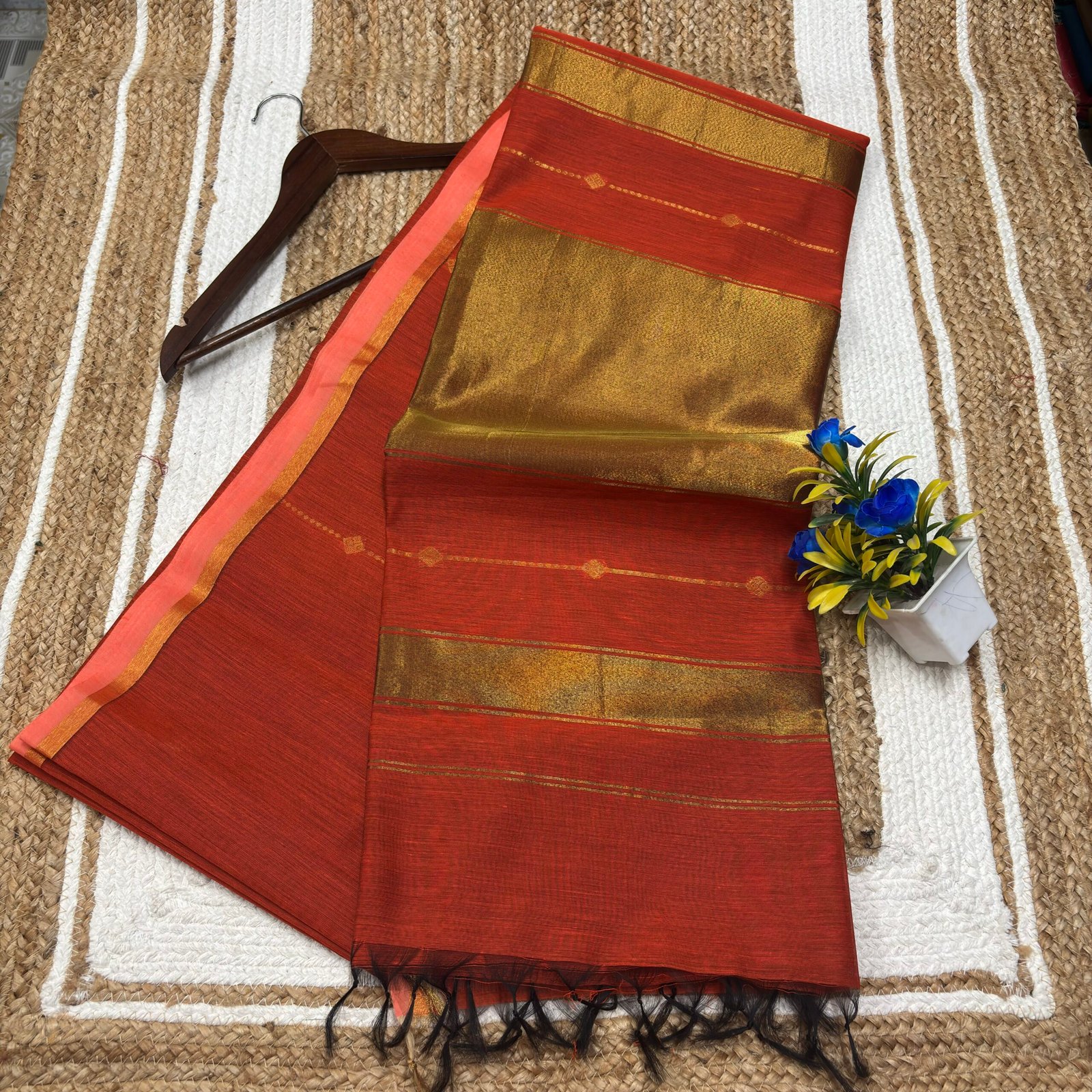 Be the first to review “Vidhya silk cotton – Rust Stripes”